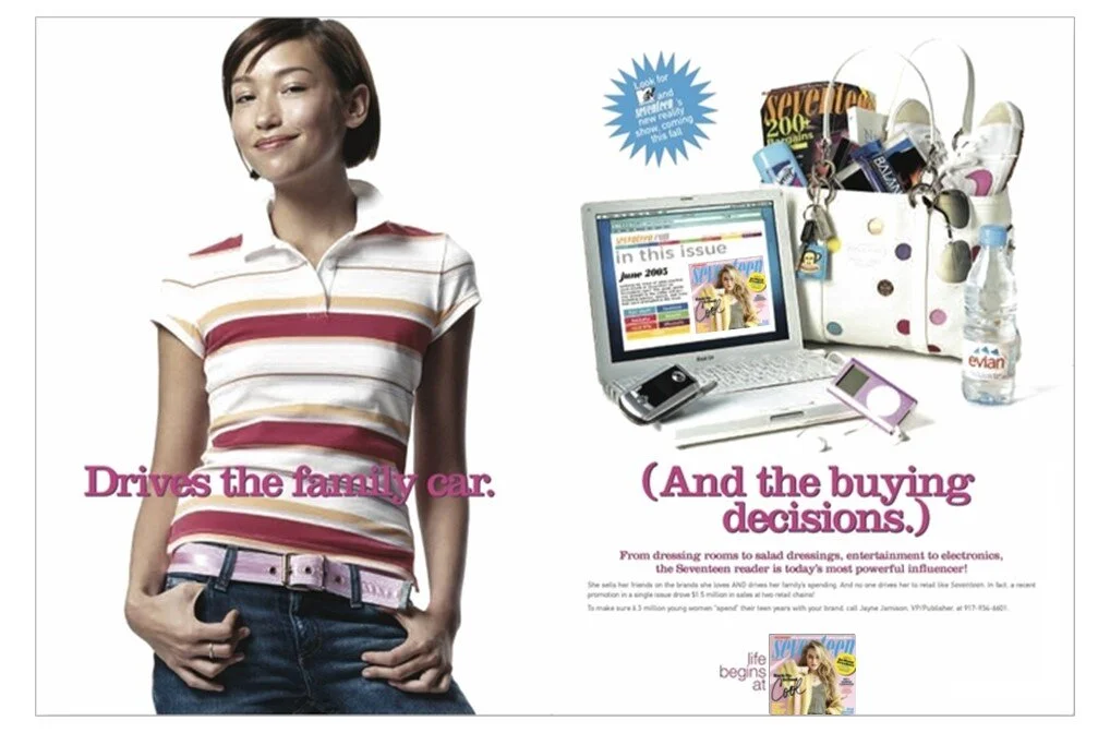 Solution: Challenging advertisers’ assumptions, its research study and campaign affirmed the teen market's true power and influence. And proved that while others “talk fashion,” Seventeen sells it.