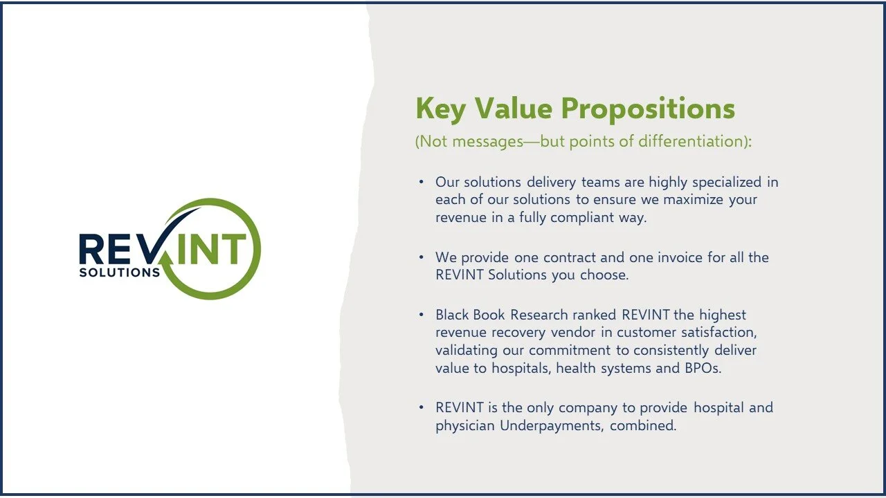 Faced with concerns about its rapid growth and an environment of regulatory uncertainty, REVINT—a leader in healthcare revenue recovery—needed to explain its acquisition strategy and the immediate benefits fast.